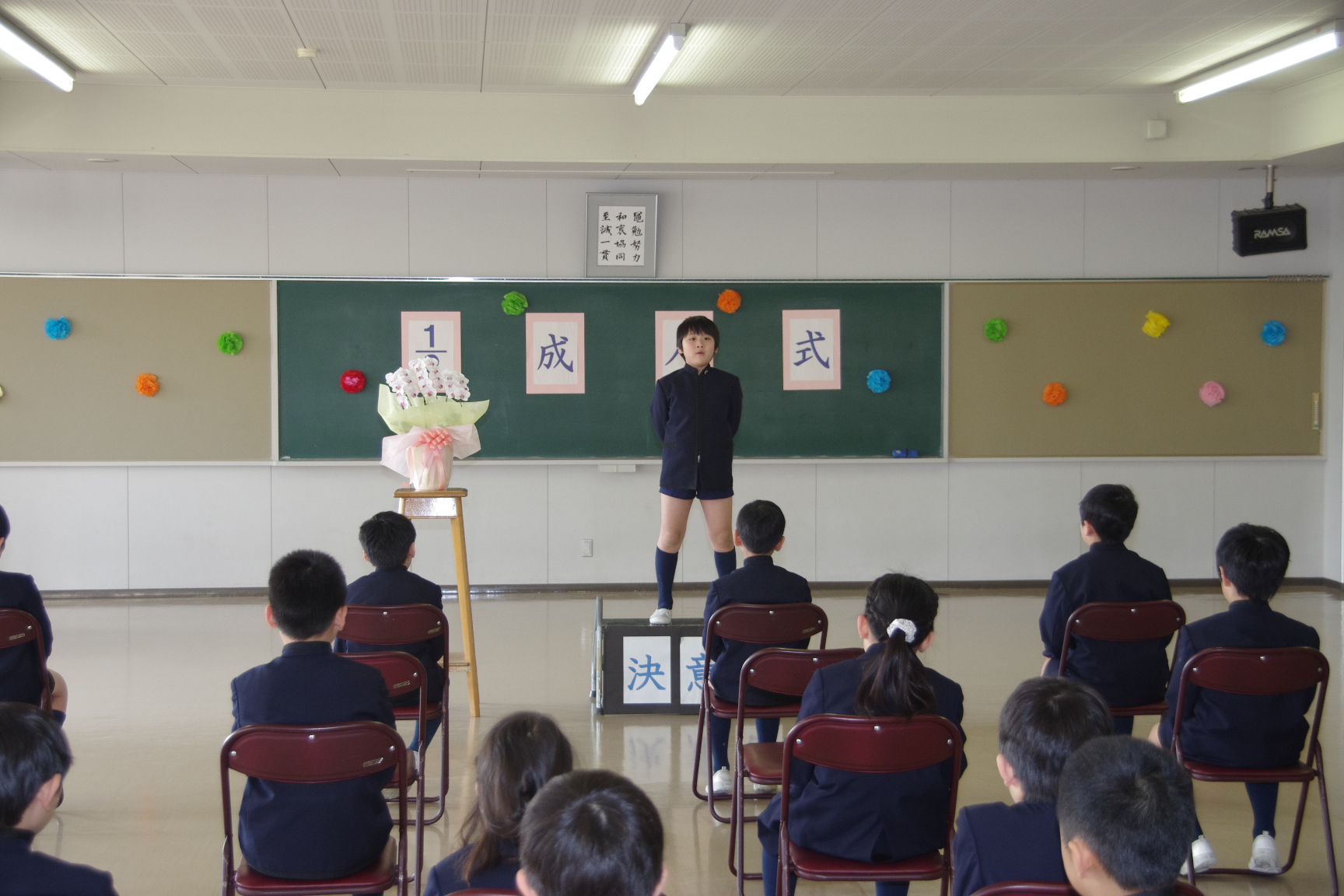 2分の1成人式を行いました。10年間自分を育ててくれた人々に感謝し、将来の夢や目標などについて、一人ひとりが決意を発表しました。