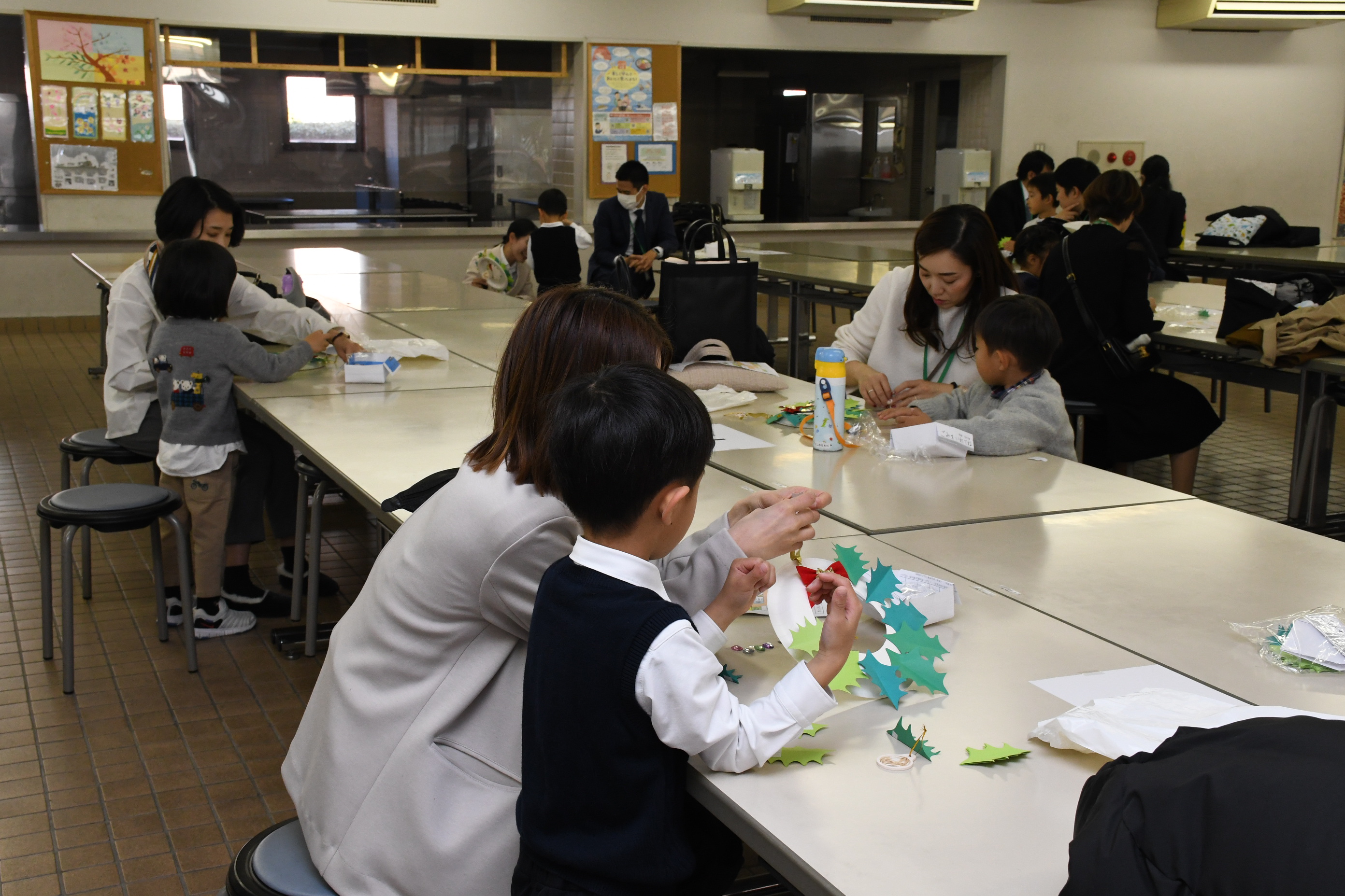 子供たちは入試プレテスト、保護者の皆様にはプレテストの解説や学校説明を行った後、親子で参加の学校探検を行い、ミッションをクリアしながらクリスマスリースの材料をゲットしました。
