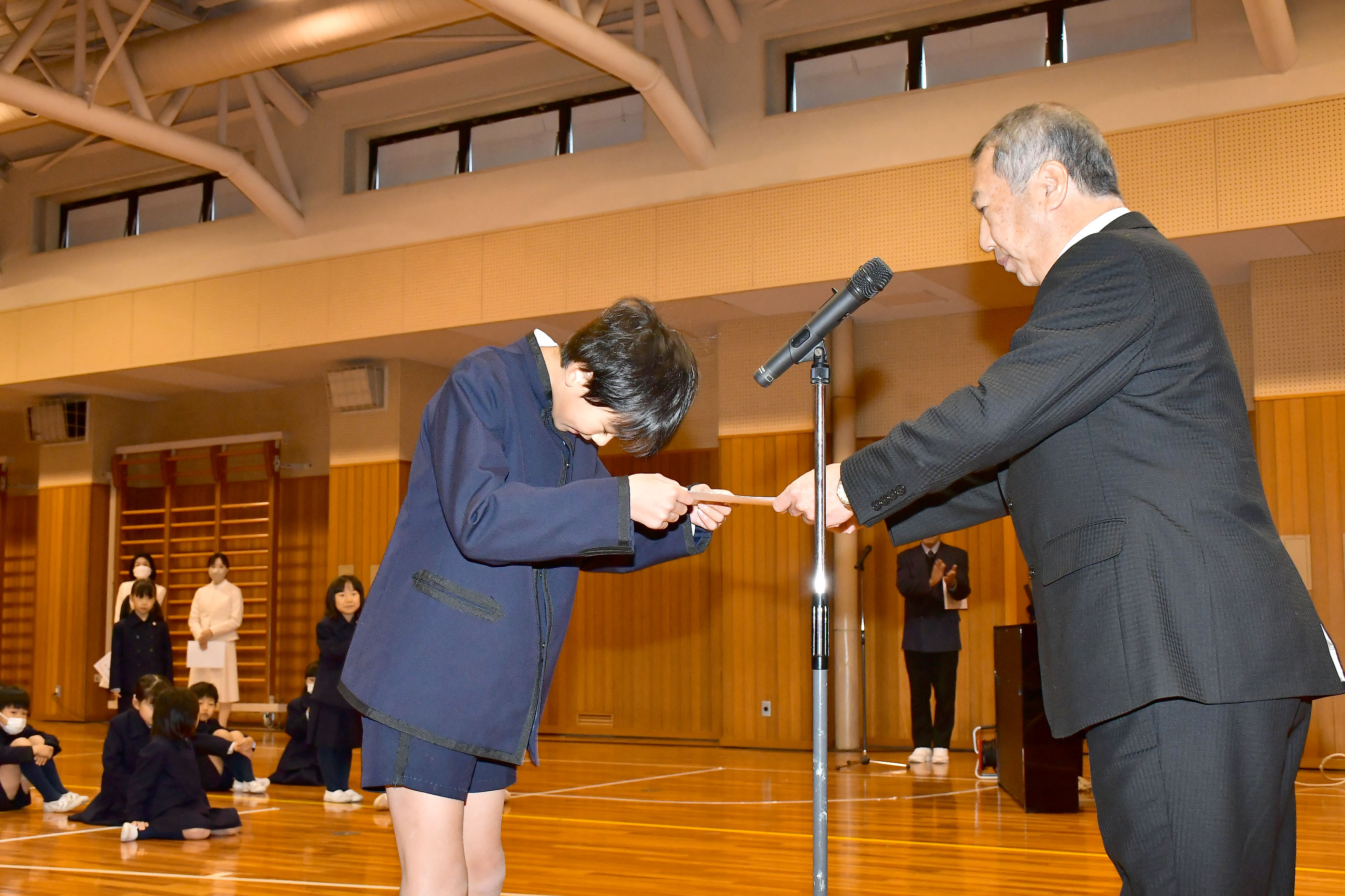 式後、学校の内外で活躍し、優秀な成績を残した児童の表彰を行いました。
