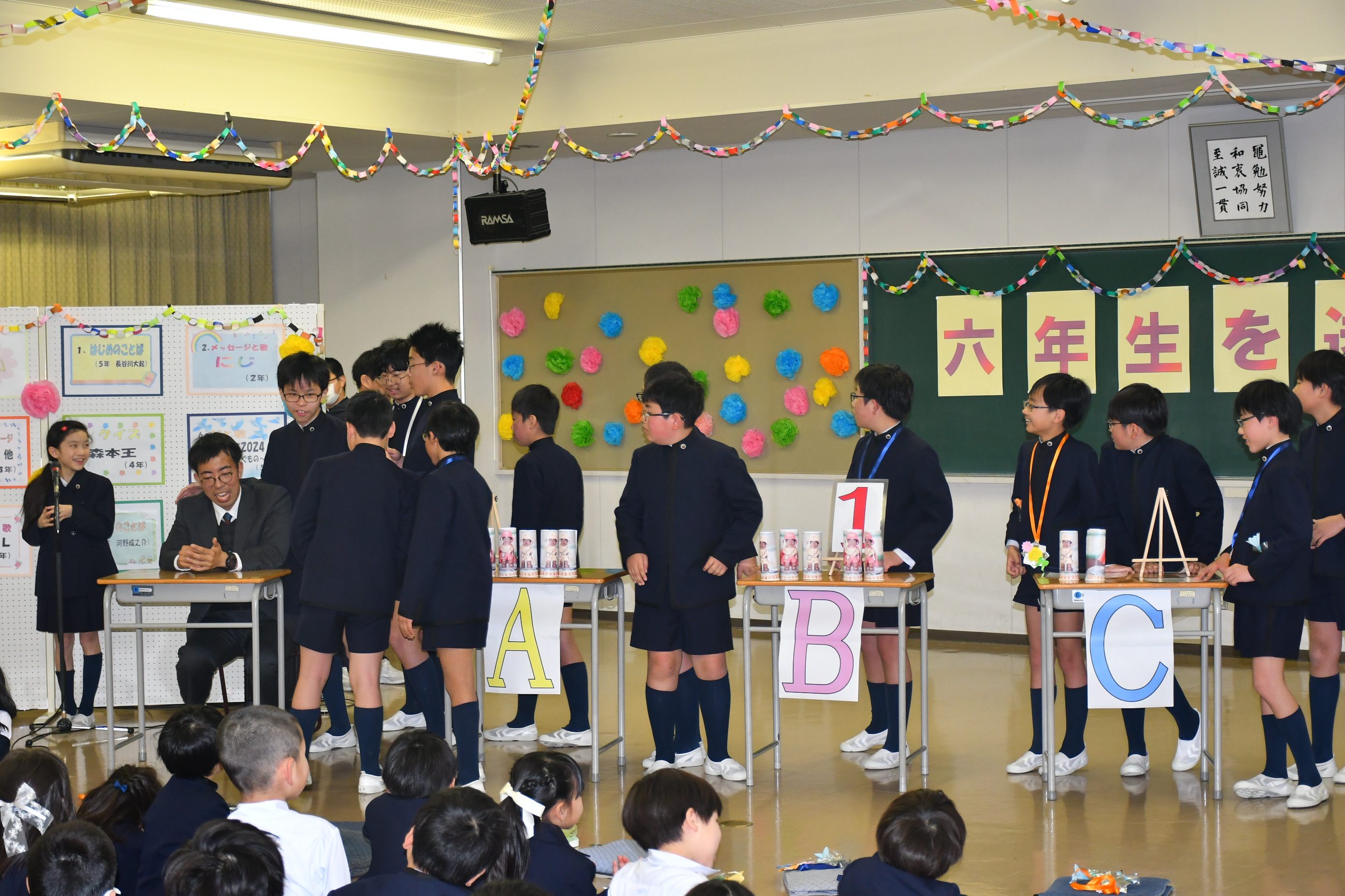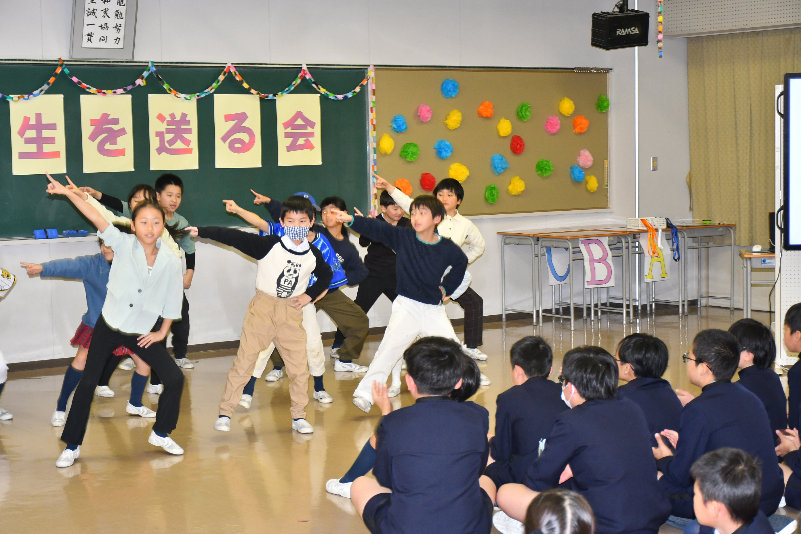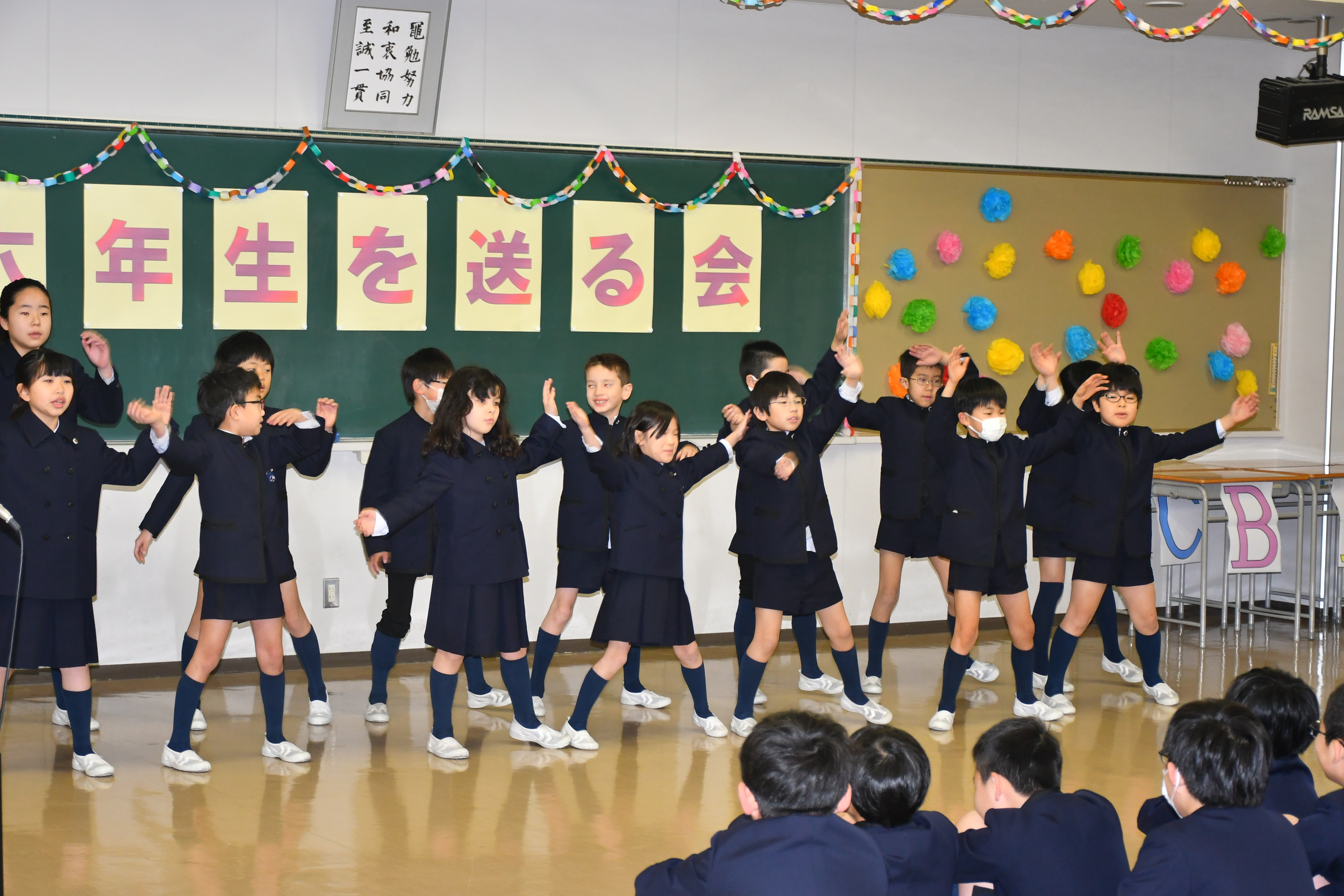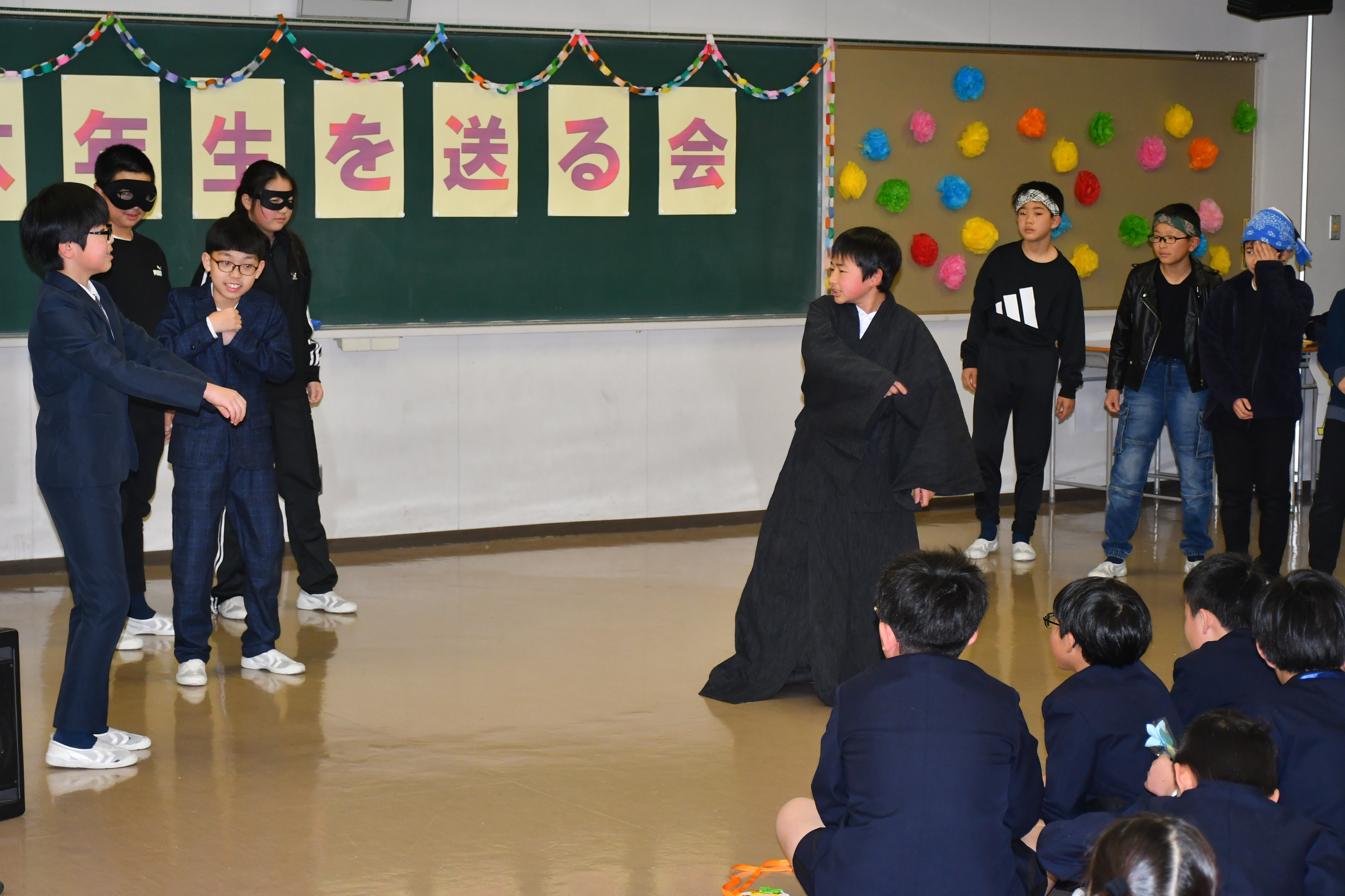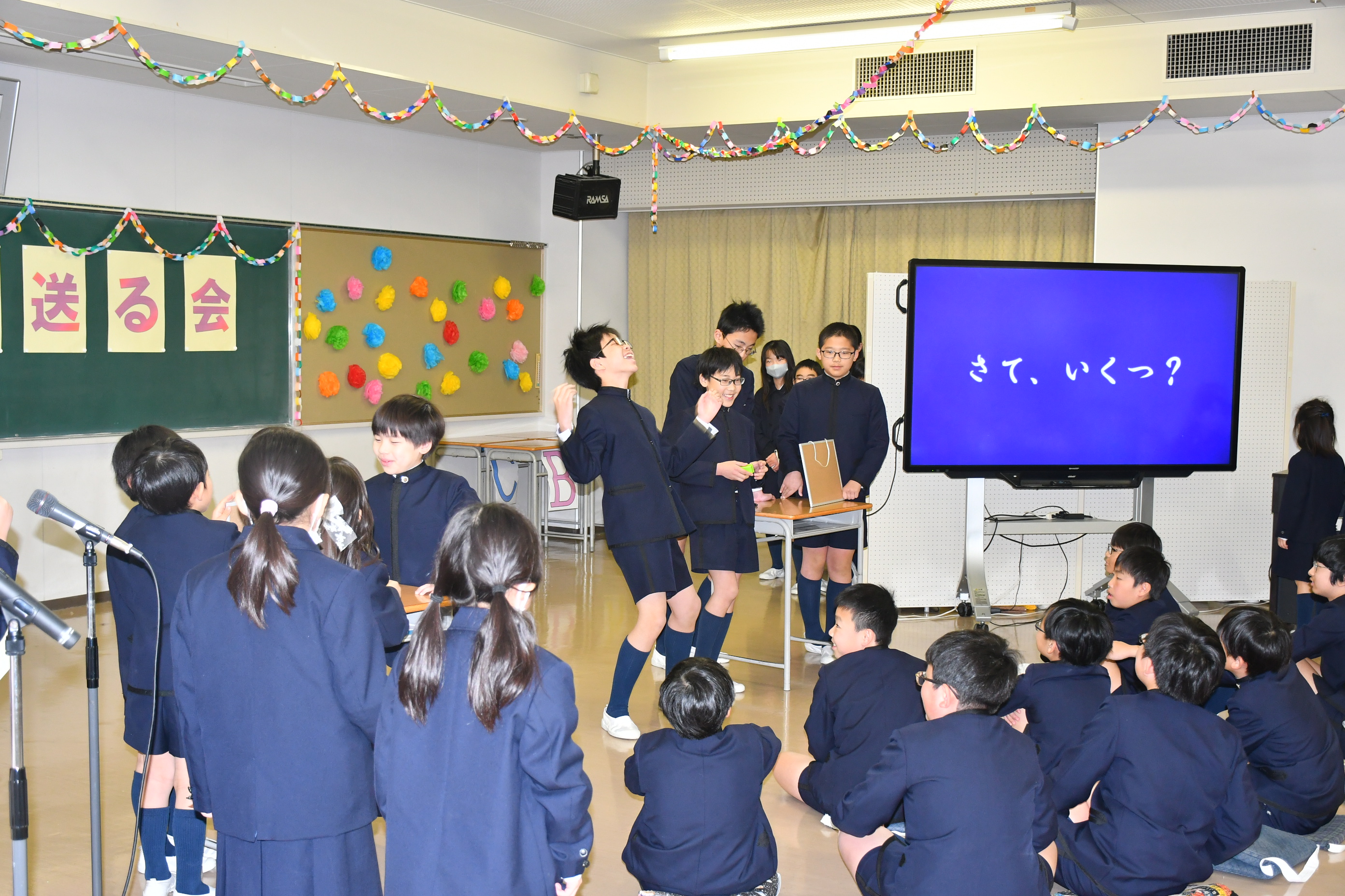 3月8日(金)、6年生を送る会を行いました。各学年が、6年生に楽しんでもらえるように一生懸命考え、練習した歌やゲーム、クイズ、劇などを披露しました。最後には、6年生が「Yell」を斉唱した後、一人ひとり卒業宣言を行いました。終了後には、昼食会を行いました。