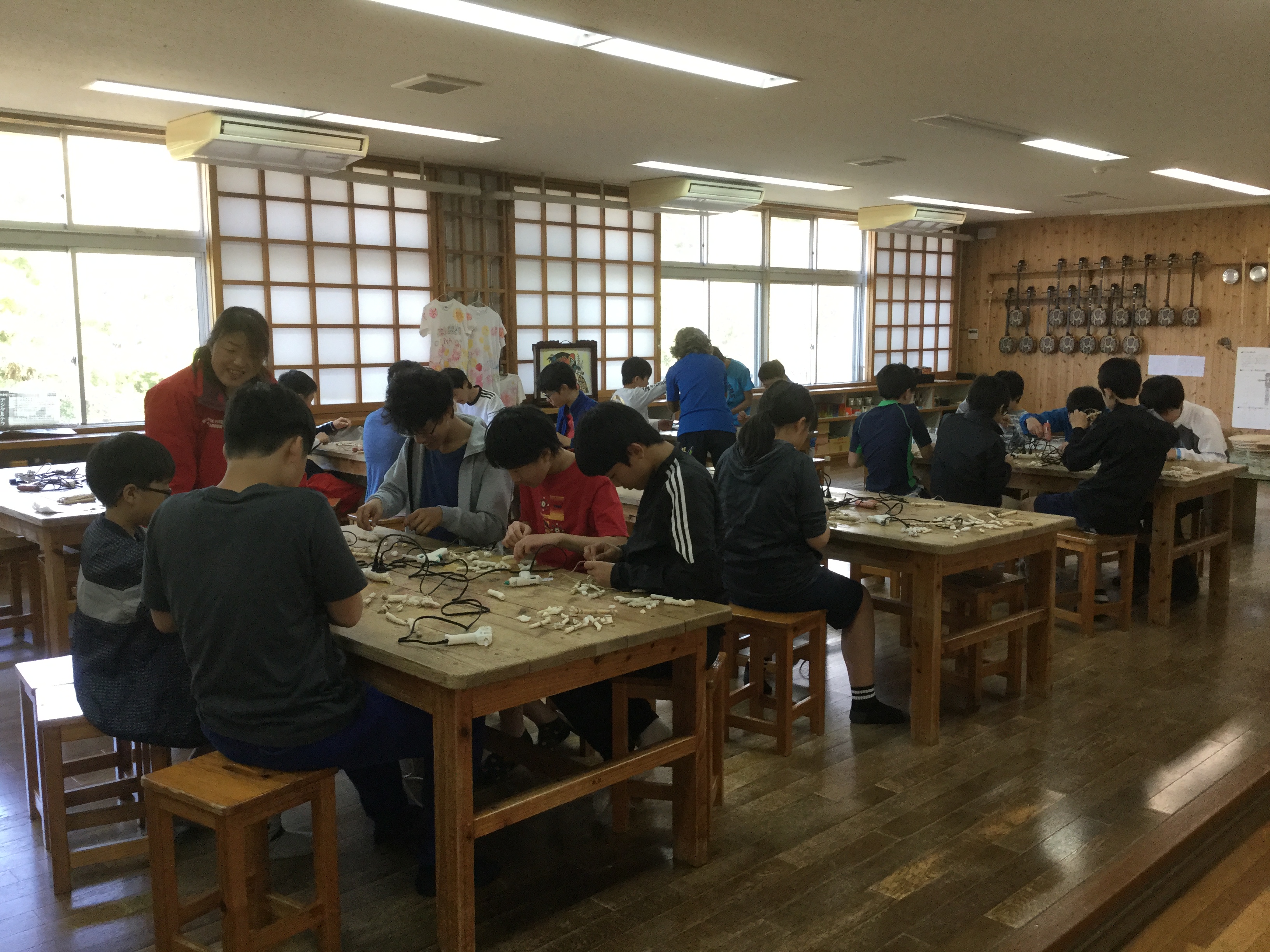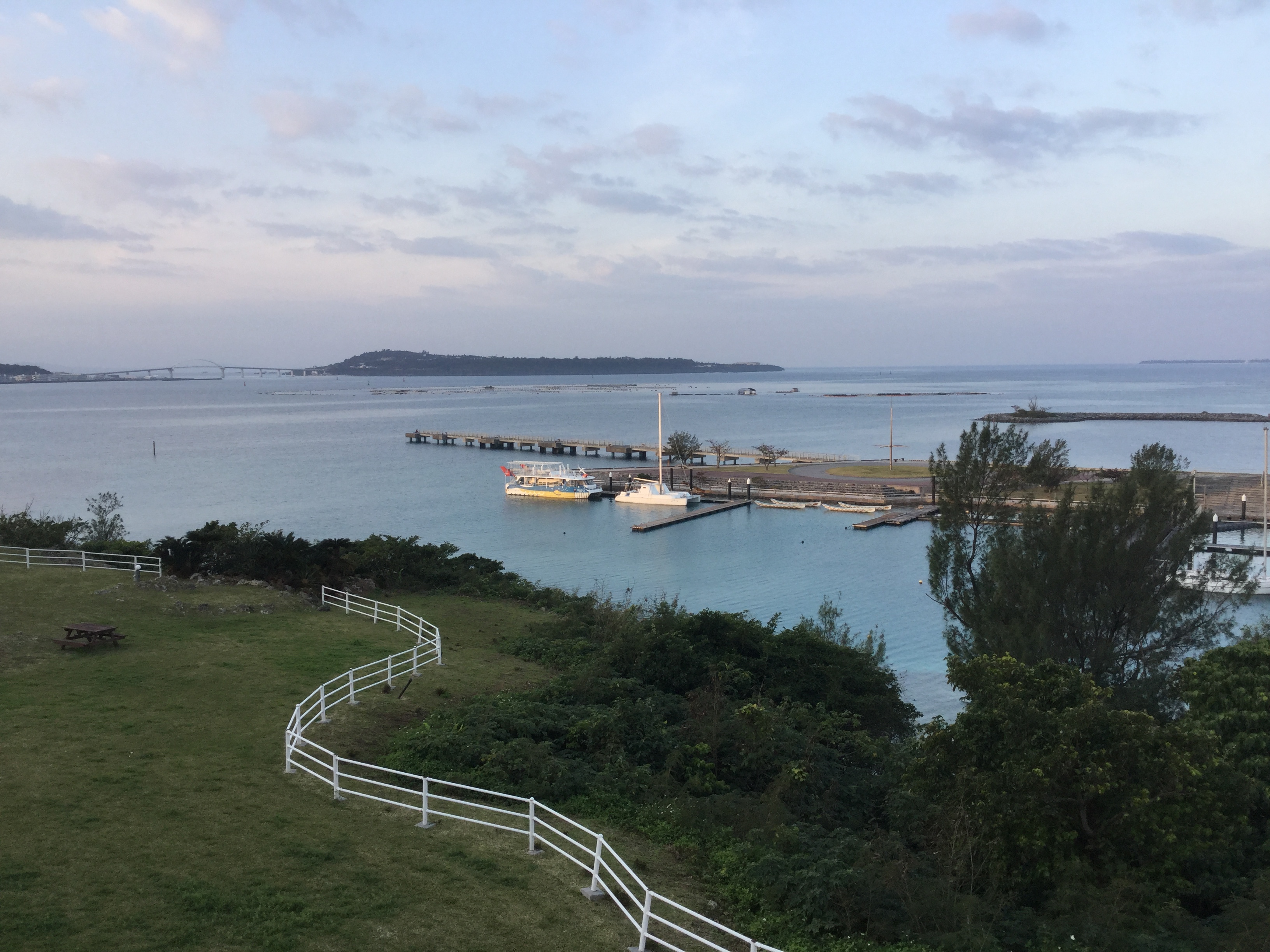 午前中は、コーラルビューイング、ドルフィンガイド、サンゴ風鈴作りなどで楽しみました。沖縄はとてもいいお天気です。