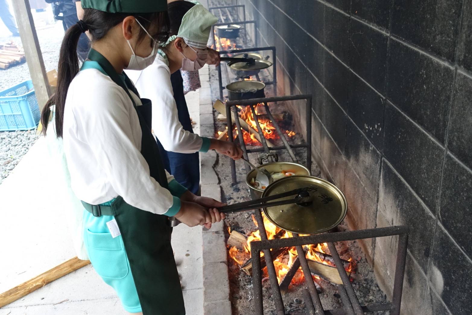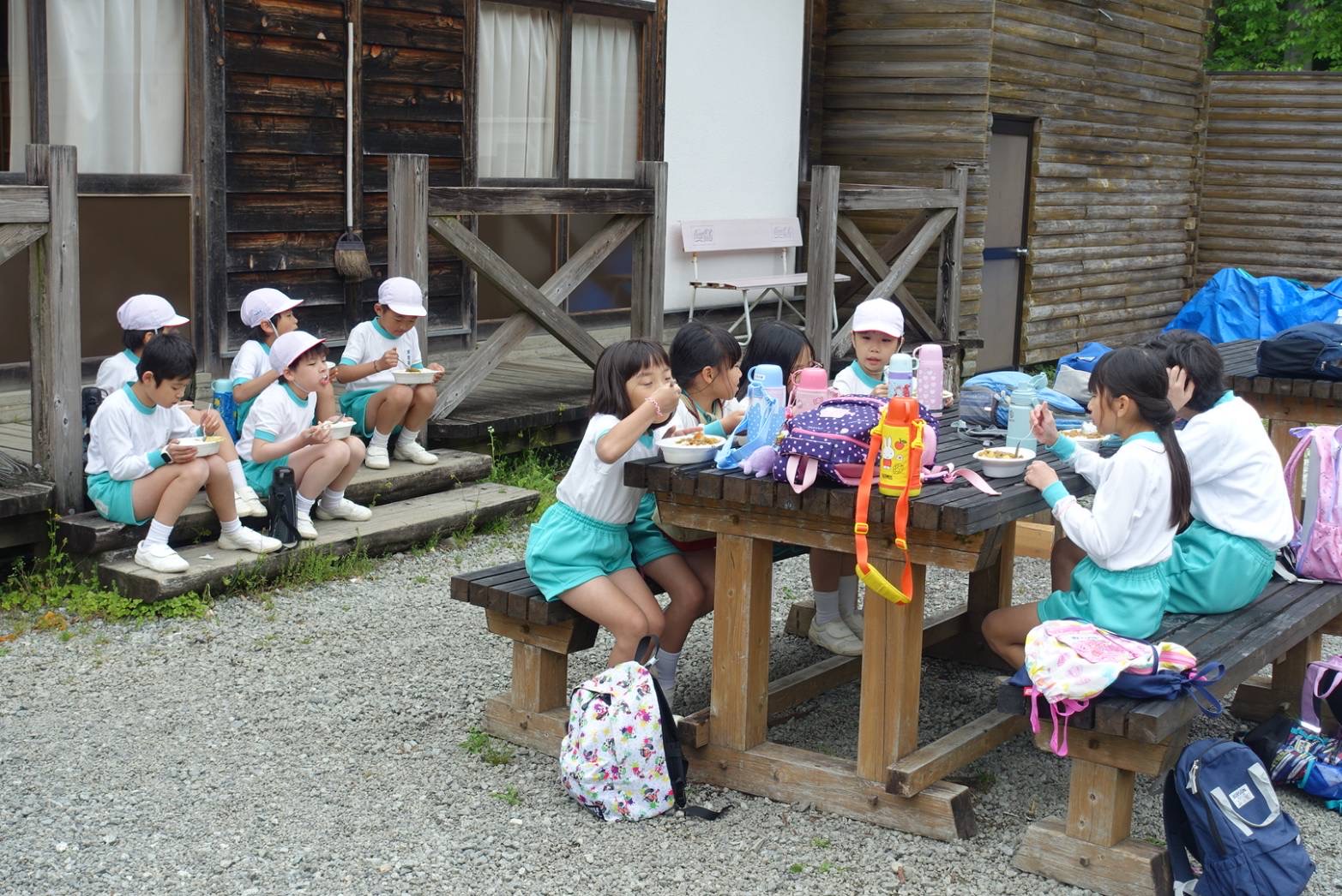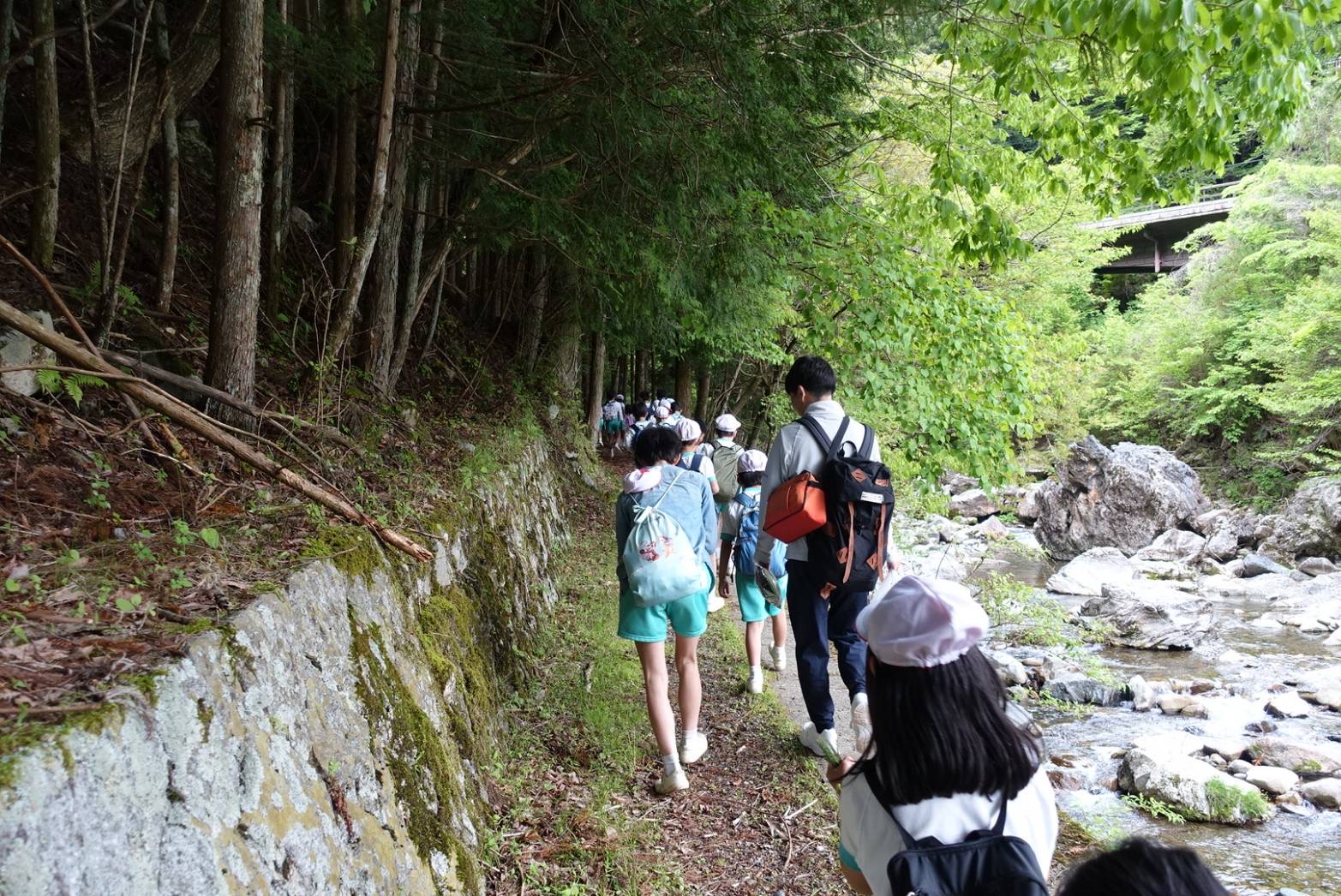 朝食後、ハイキングへ出発。面不動鍾乳洞、かりがね橋と進み、キャンプ場へ。5年生が苦労して作ったカレーは、皆に好評でした。