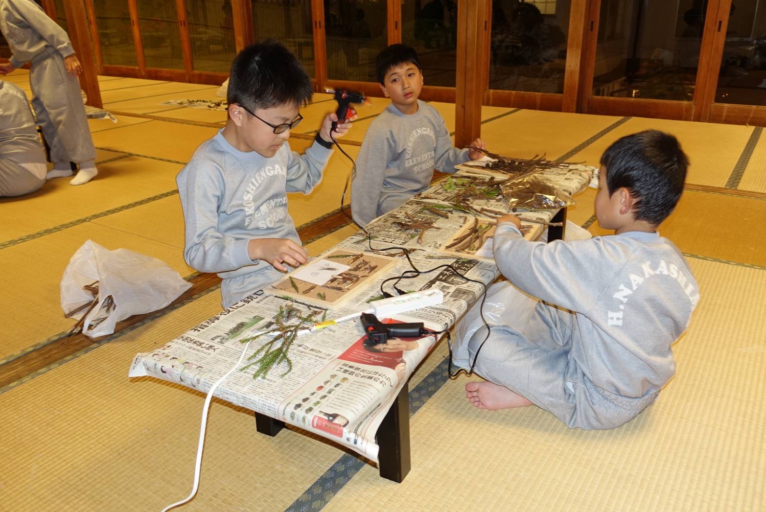 夕食後、拾い集めた材料でフォトフレーム作り。それぞれ個性豊かな作品に仕上がりました。