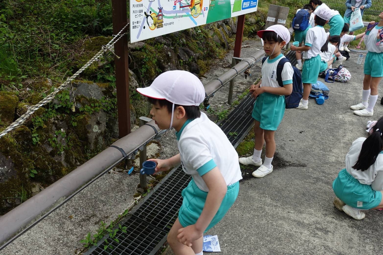 昼食後、展望台まで登り、エコミュージアムへ。館内を見学後川沿いをさかのぼり、かじかの滝や母公堂を見て宿へ戻りました。帰る途中で飲んだ湧き水「ごろごろ水」はとても美味しかったです。