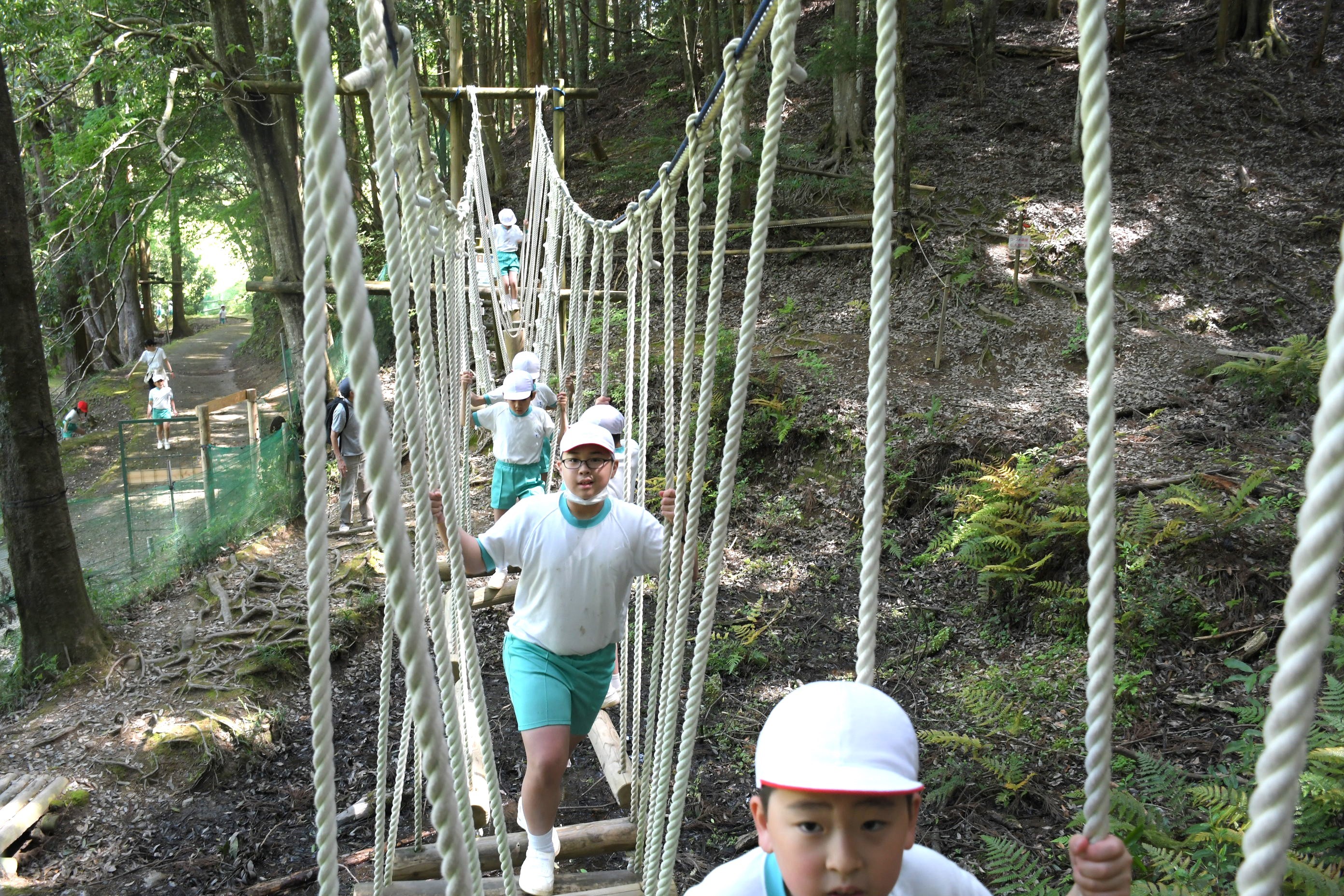 林間学校(篠山)第3日目[投稿日:2024年05月17日] 林間学校最終日、班のメンバーで協力して、部屋をきれいに片付けてからアスレチックに挑戦しました。中には難所もありましたが、一つひとつのコースを諦めることなく楽しんで取り組みました。この3日間を通して、班長・副班長を務めた6年生はもちろんですが、子どもたち一人ひとりが成長することができました。 朝の集い 朝の集い フィールドアスレチック ターザンロープに挑戦! 難関コースにも挑戦! 退所式 解散式 3日間よく頑張りました 一覧へ戻る