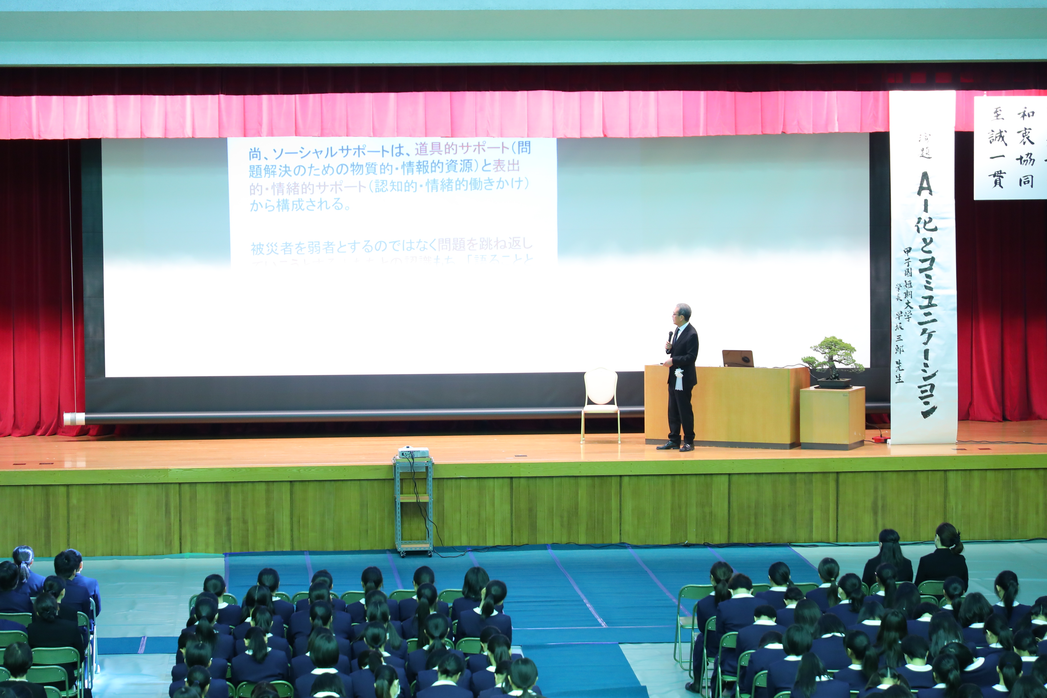 式後,甲子園短期大学学長 早坂三郎先生による記念講演「AI化とコミュニケーション」を拝聴しました。