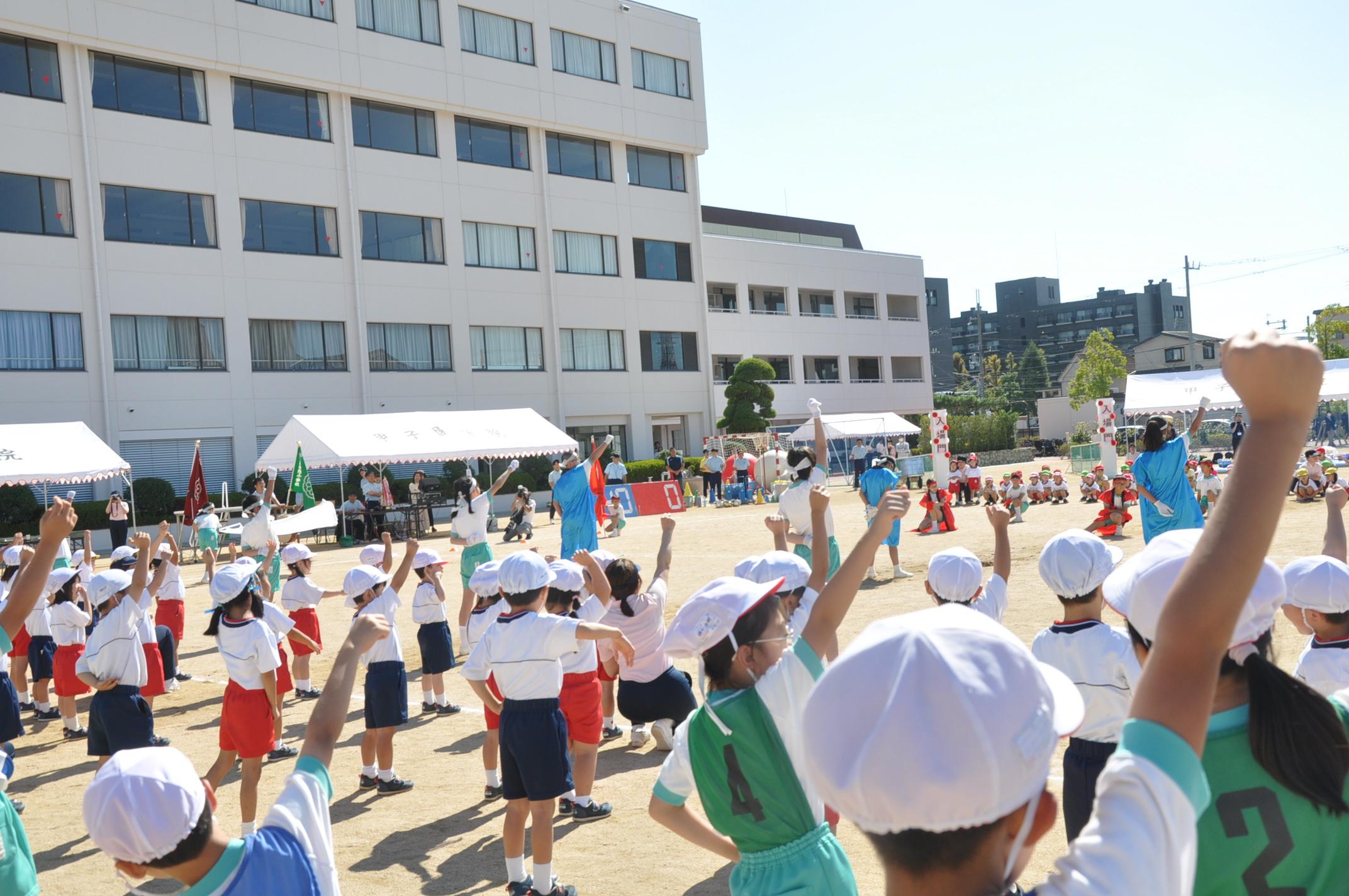 小学校の子どもたちは幼稚園児とともに、元気いっぱい練習の成果を発揮しました。