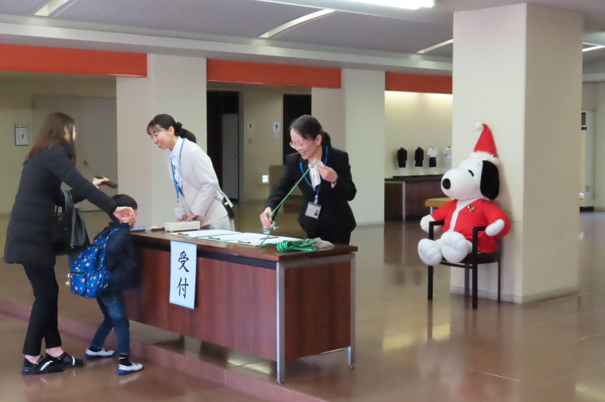 子供たちは入試プレテスト、保護者の皆様にはプレテストの解説や学校説明を行った後、親子で参加の学校探検を行い、各教室で様々な授業体験を行いました。最後にはサンタさんからプレゼントを受け取りました。