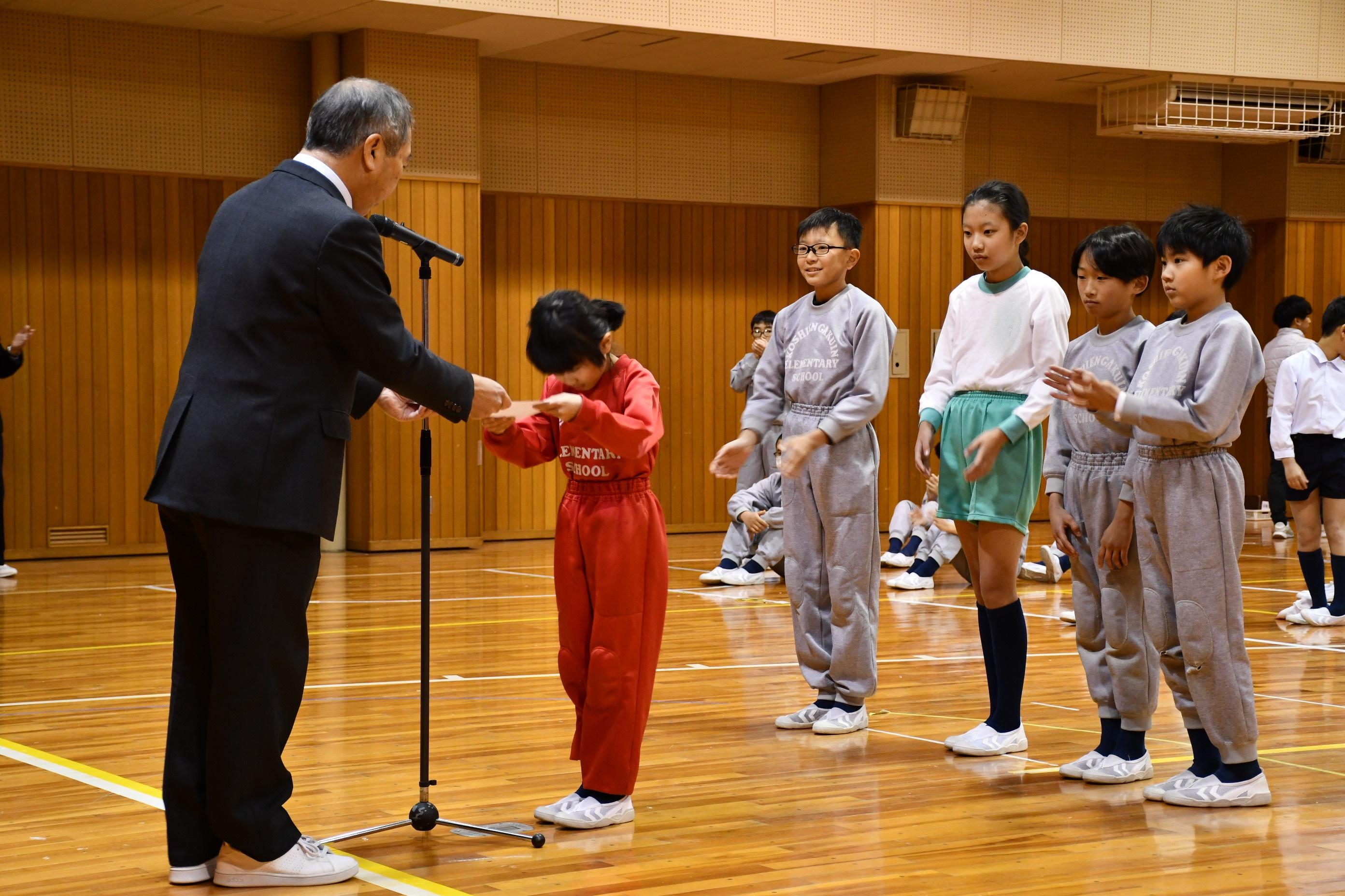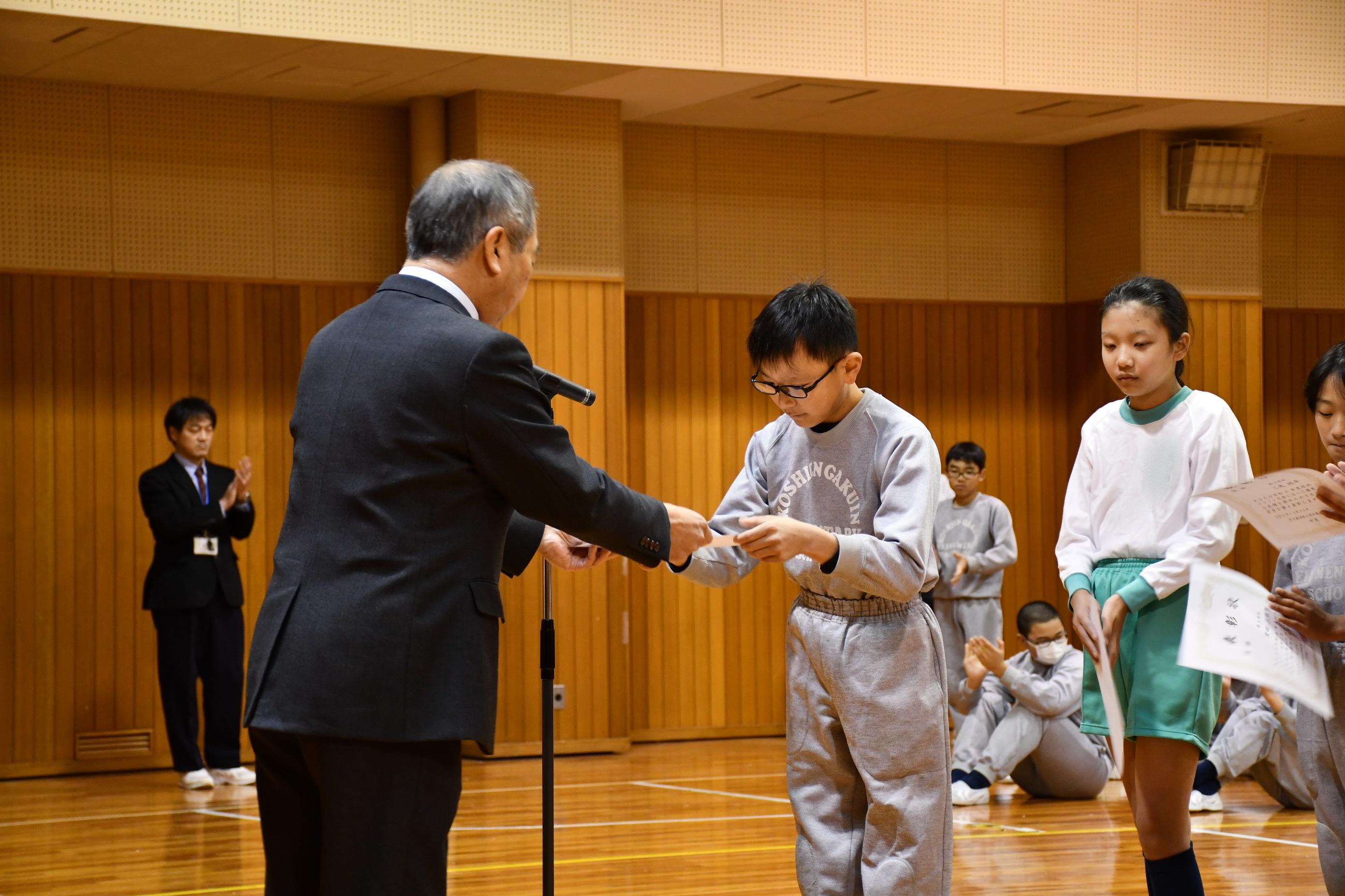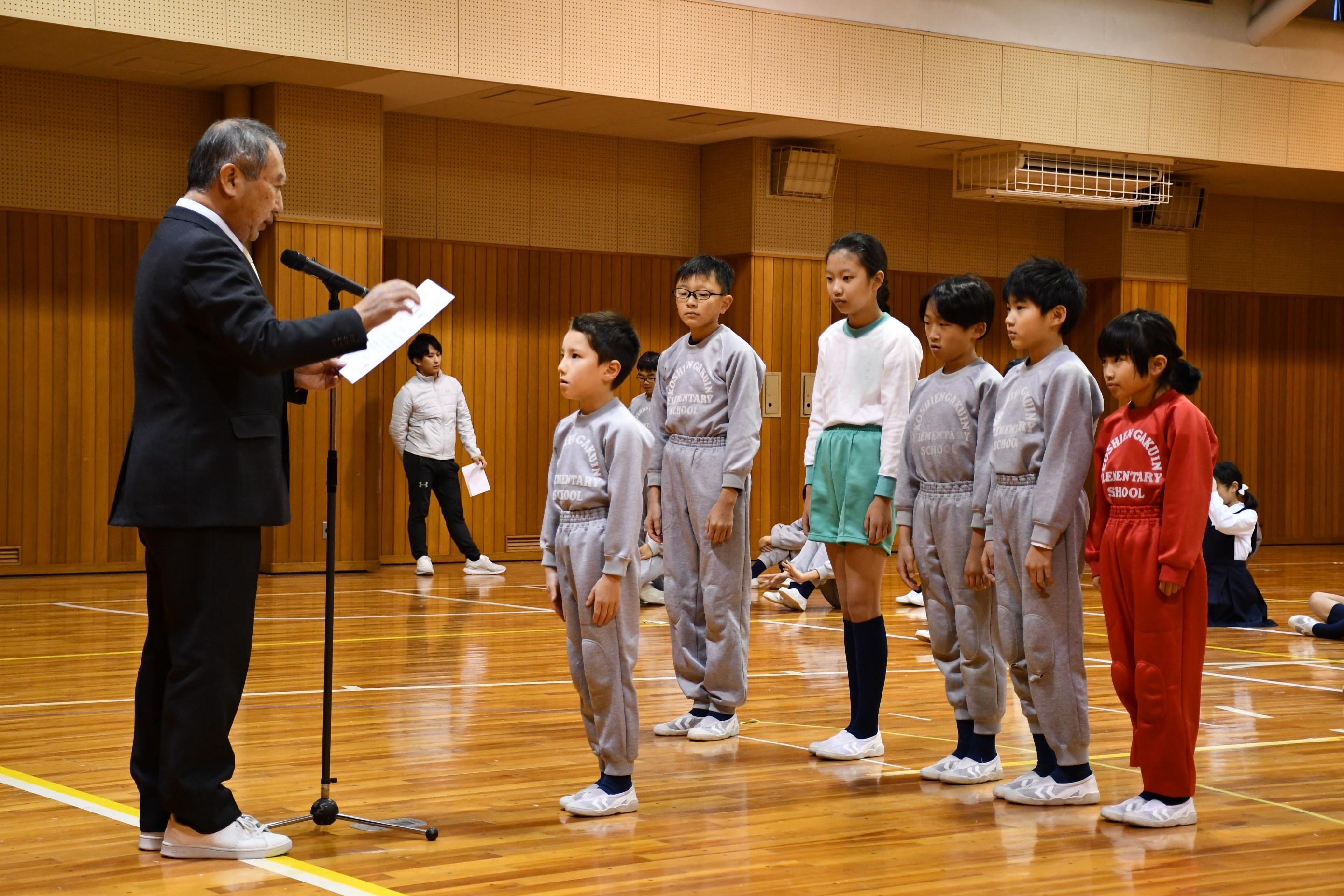 令和6年12月23日(月)、児童朝礼で表彰式を行いました。校内のマラソン大会と全校暗算で優秀な成績を残した児童の表彰を行いました。また、算数・数学思考力検定や空手で優秀な成績を残した児童の表彰も行いました。