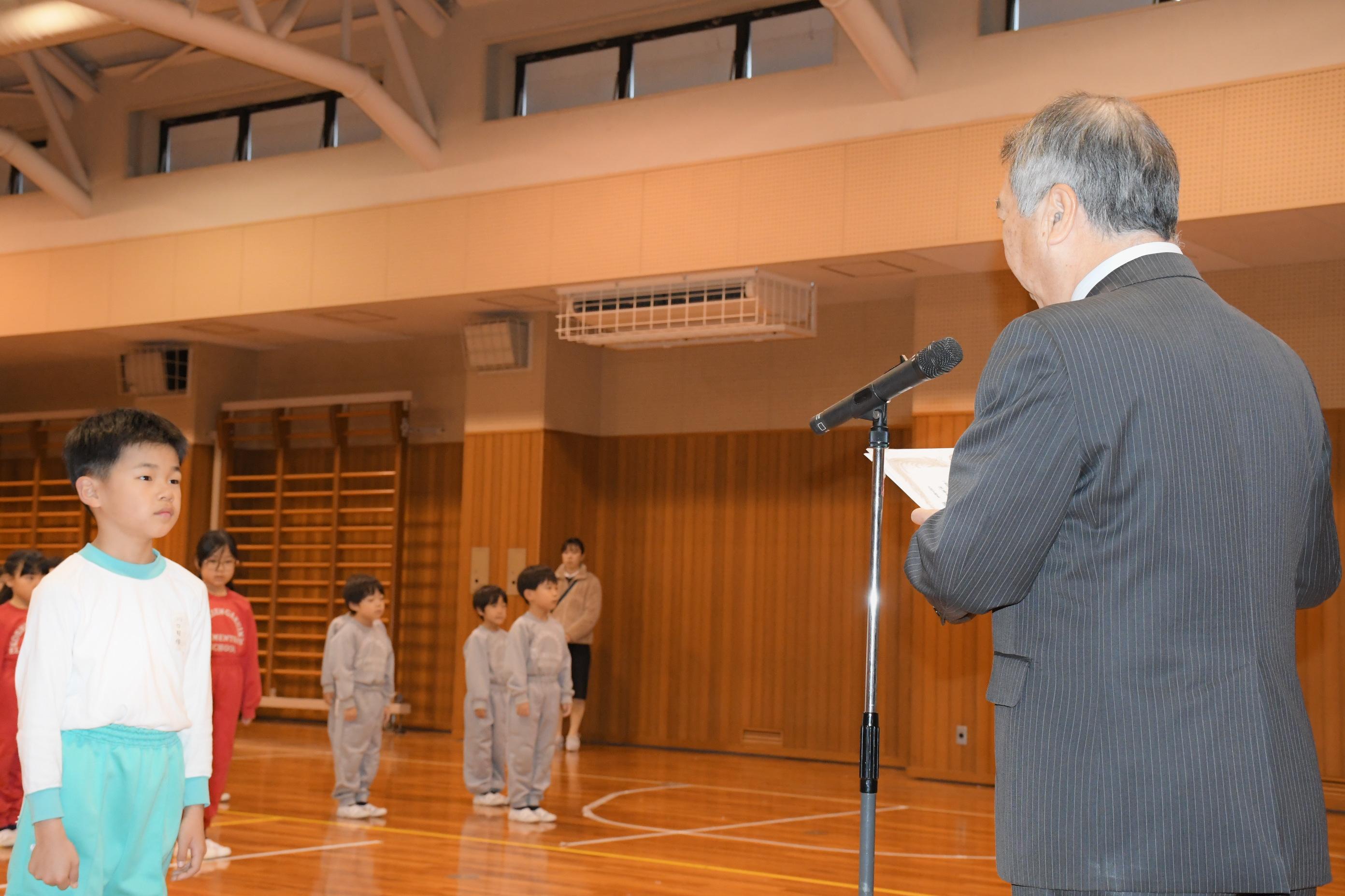 式後,校外での活躍として,珠算連盟主催の暗算での表彰を行いました。