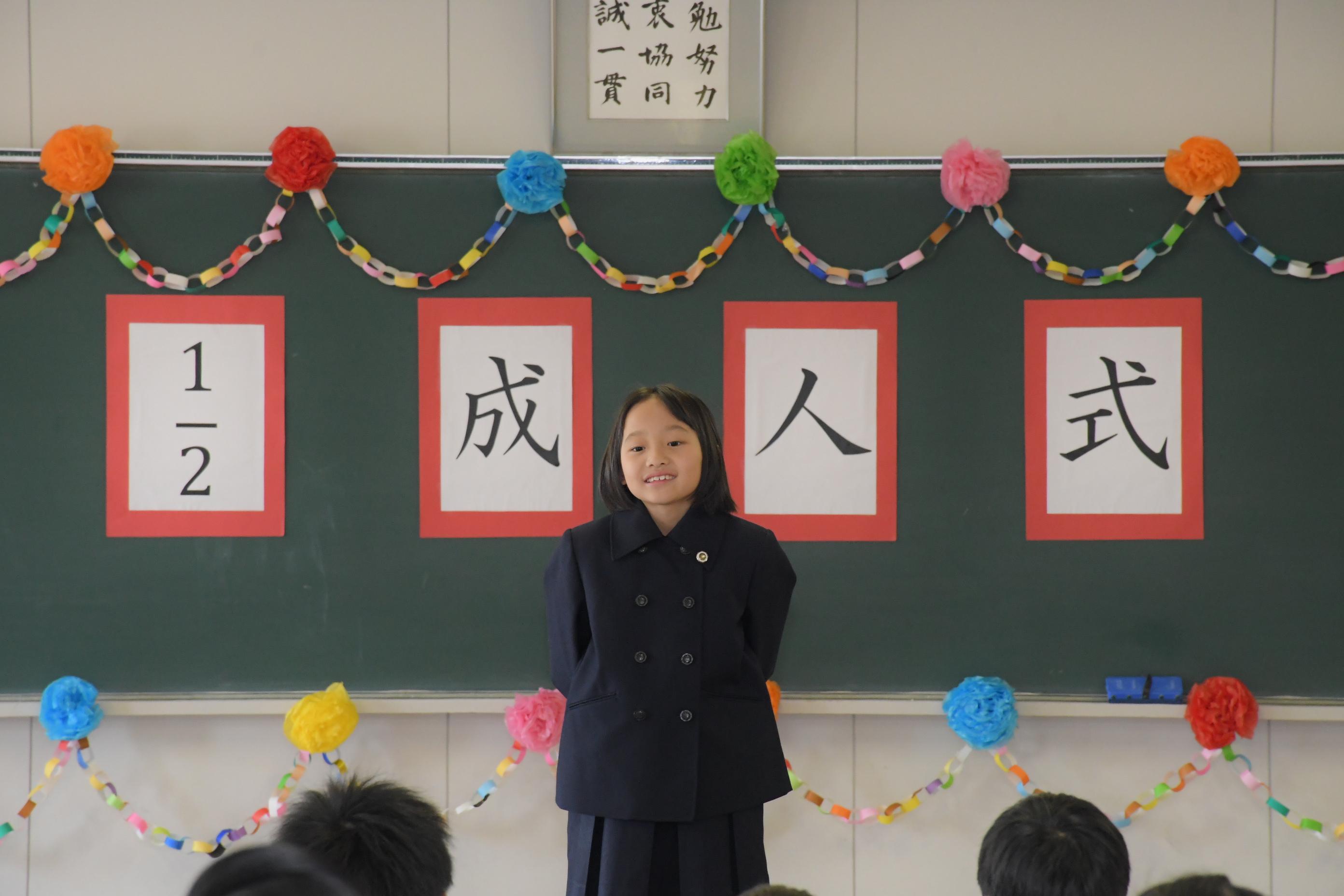 4年生は参観授業として、二分の一成人式を行いました。