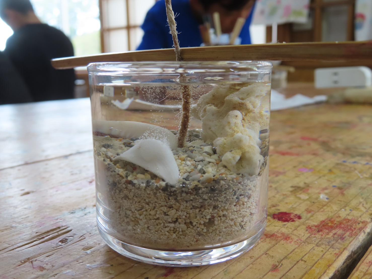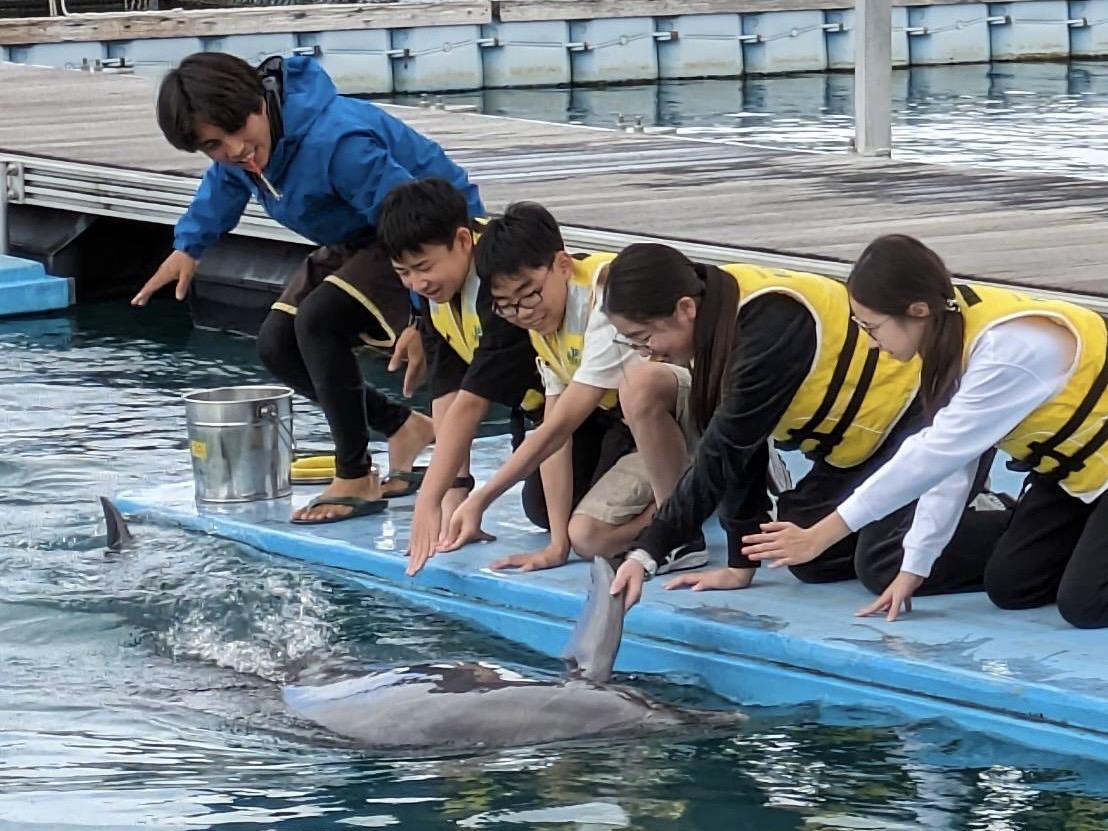 お昼にはカレーをいただき、午後はドルフィンガイドでイルカと触れ合い、さらにキャンドル作りやサンゴ風鈴作りにも挑戦しました。