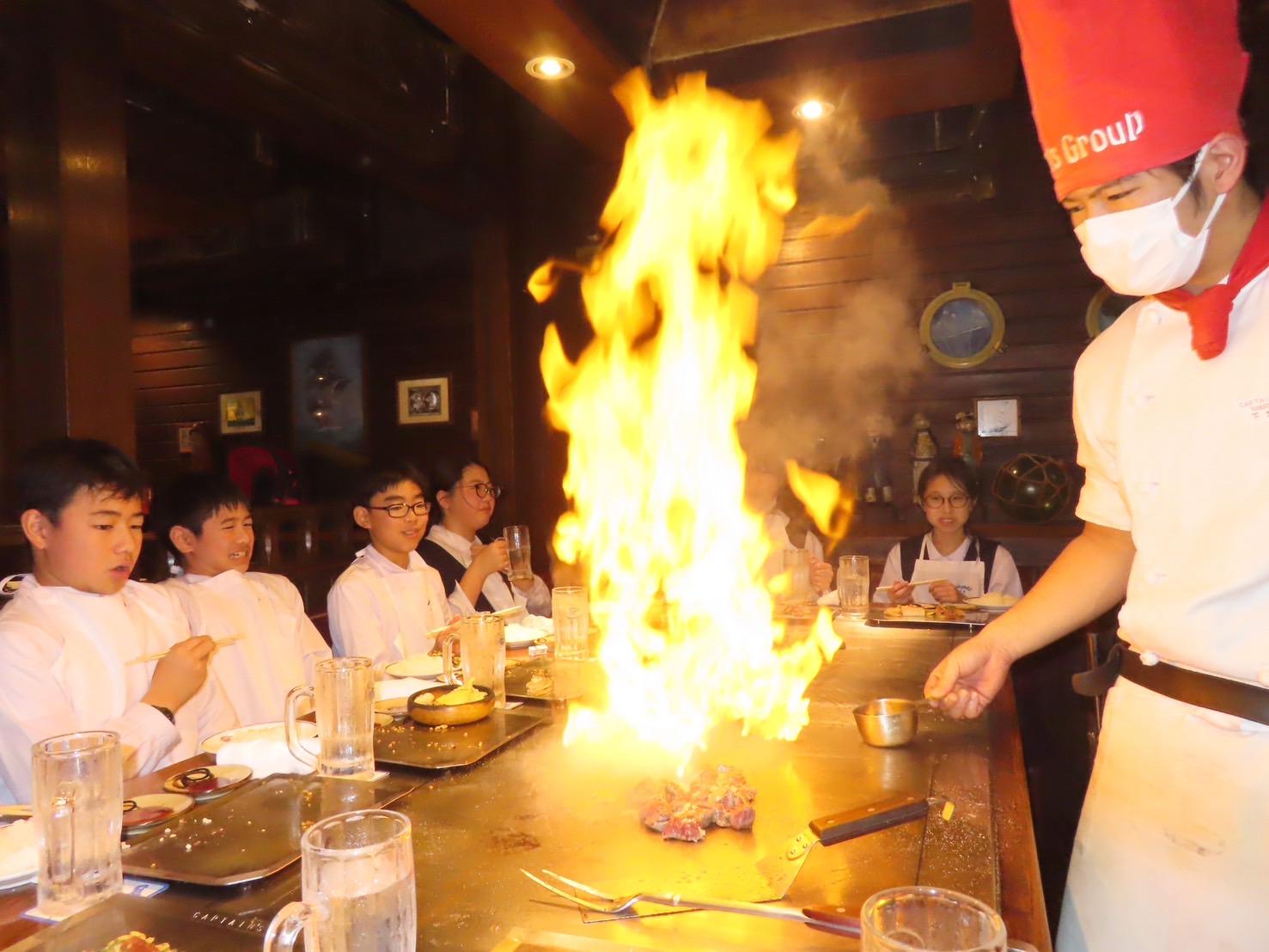 その後、国際通りへ向かい、散策や買い物を楽しみました。昼食は、待ちに待ったステーキ。迫力あるパフォーマンスを楽しみながら、おいしいステーキに舌鼓を打ちました。