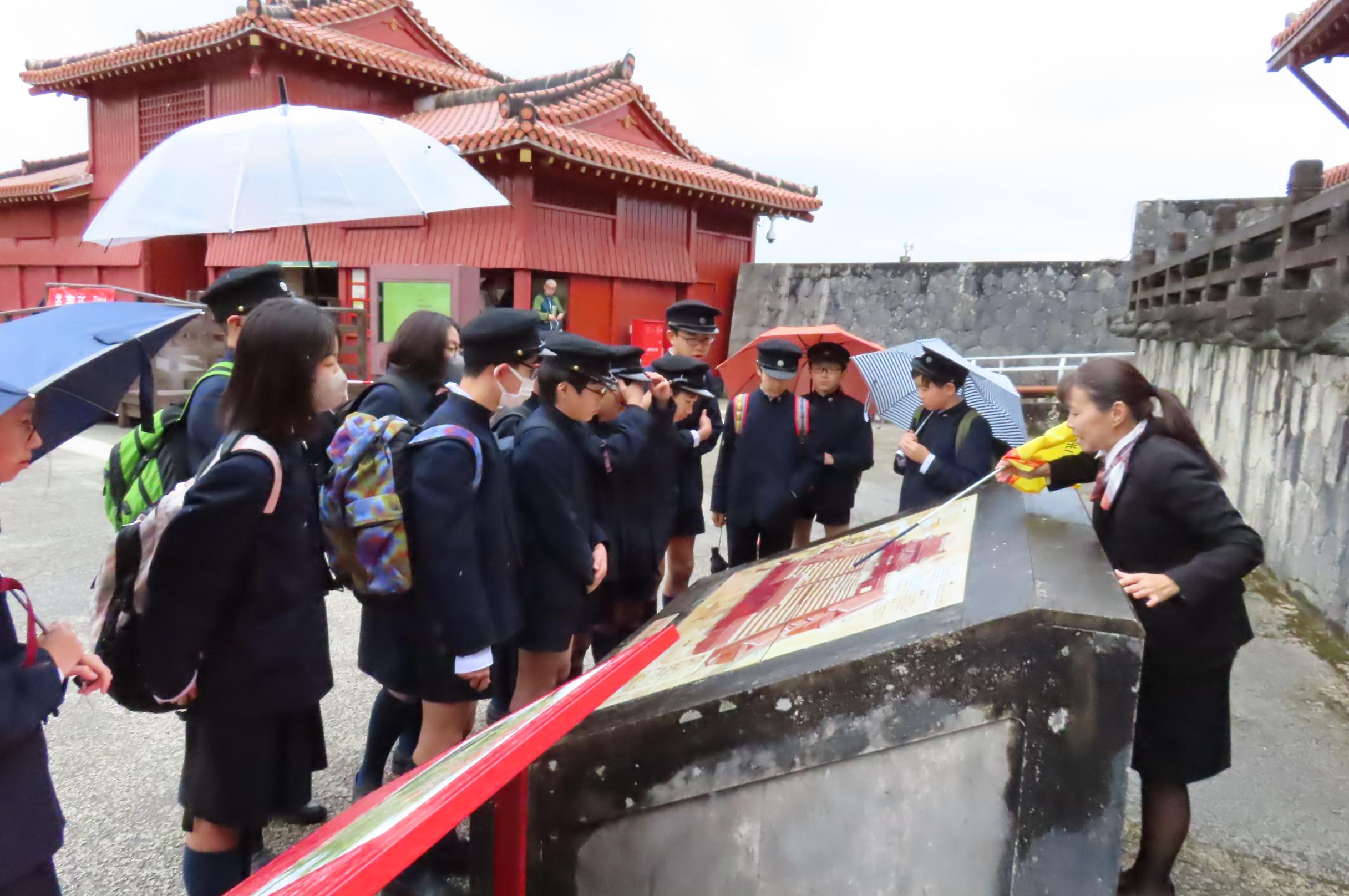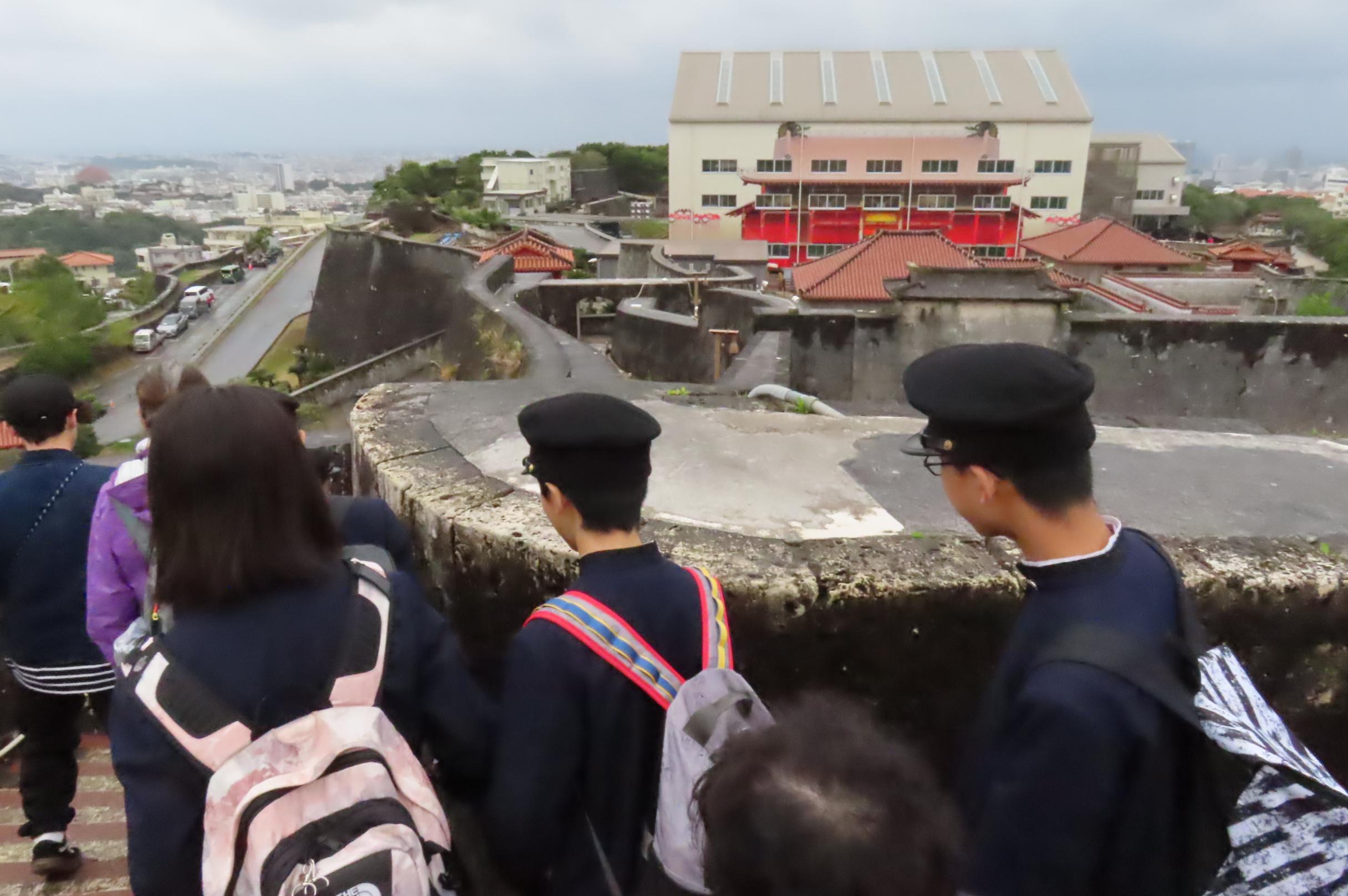 最終日は、朝から首里城公園を訪れました。守礼門をくぐり、公園内の歴史的建造物や史跡を見学。さらに、首里城の復元に向けて進められている工事の様子を見学し、沖縄の人々の熱意やエネルギーを感じることができました。