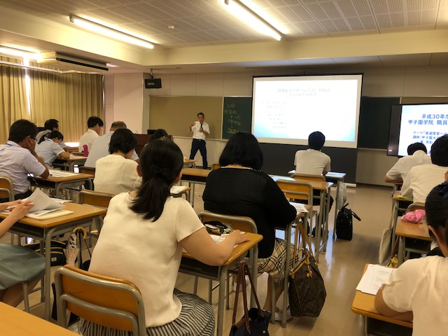 職員研修会[投稿日:2018年07月24日] 甲子園学院幼稚園、小学校、中高校の教員合同の研修会を開催しました。今回は、甲子園大学の東斉彰教授をお招きし、心理学の側面から子ども理解を深める研修を行いました。 一覧へ戻る