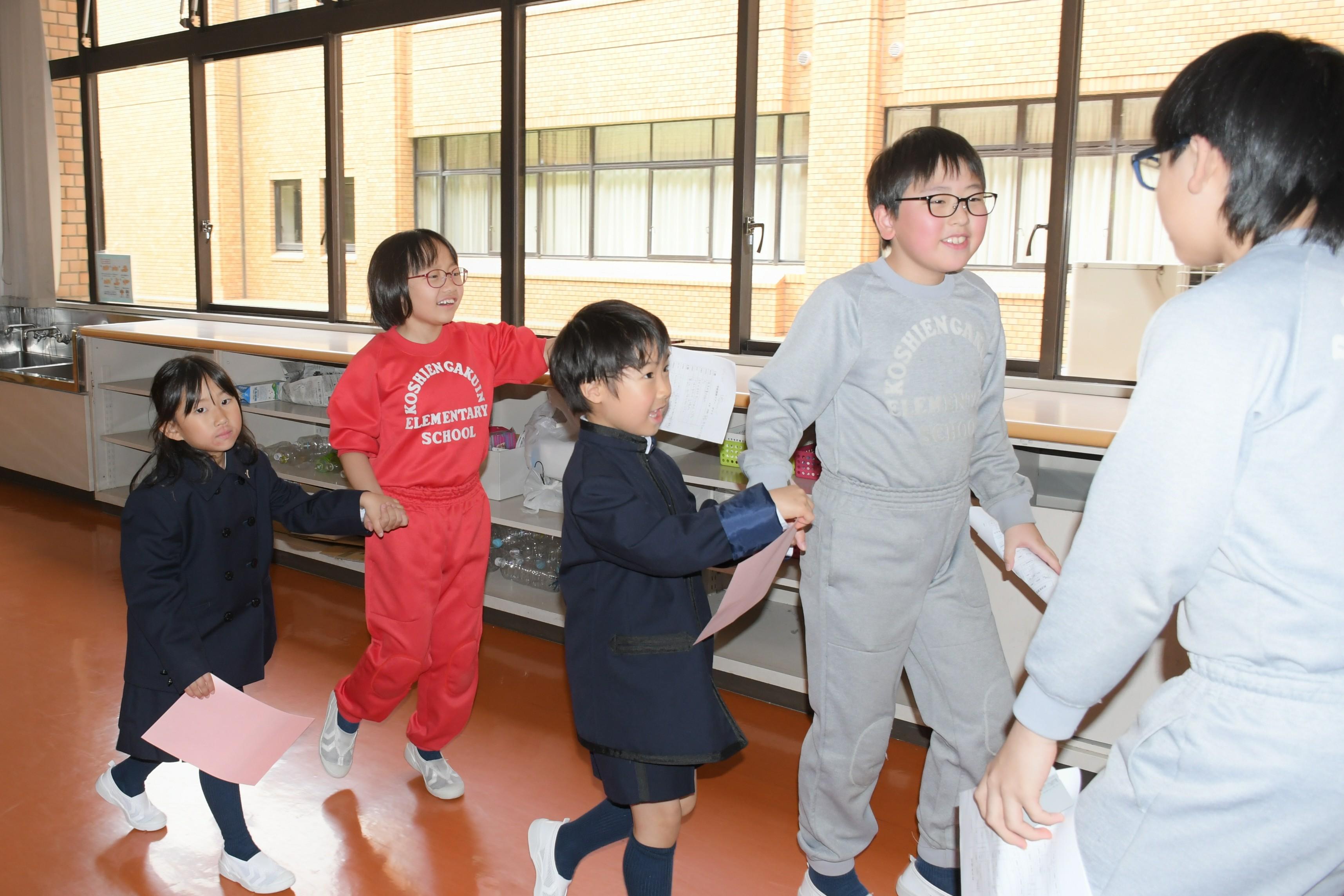 1年生・6年生で班を組み、学校探検を行いました。子どもたちは少し緊張した様子でスタート。活動中、優しく手を引き最高学年として頼れる姿を見せた6年生。初めて入る教室に興味津々の1年生。楽しく学校探検をする中で、親睦を深める良い機会となりました。