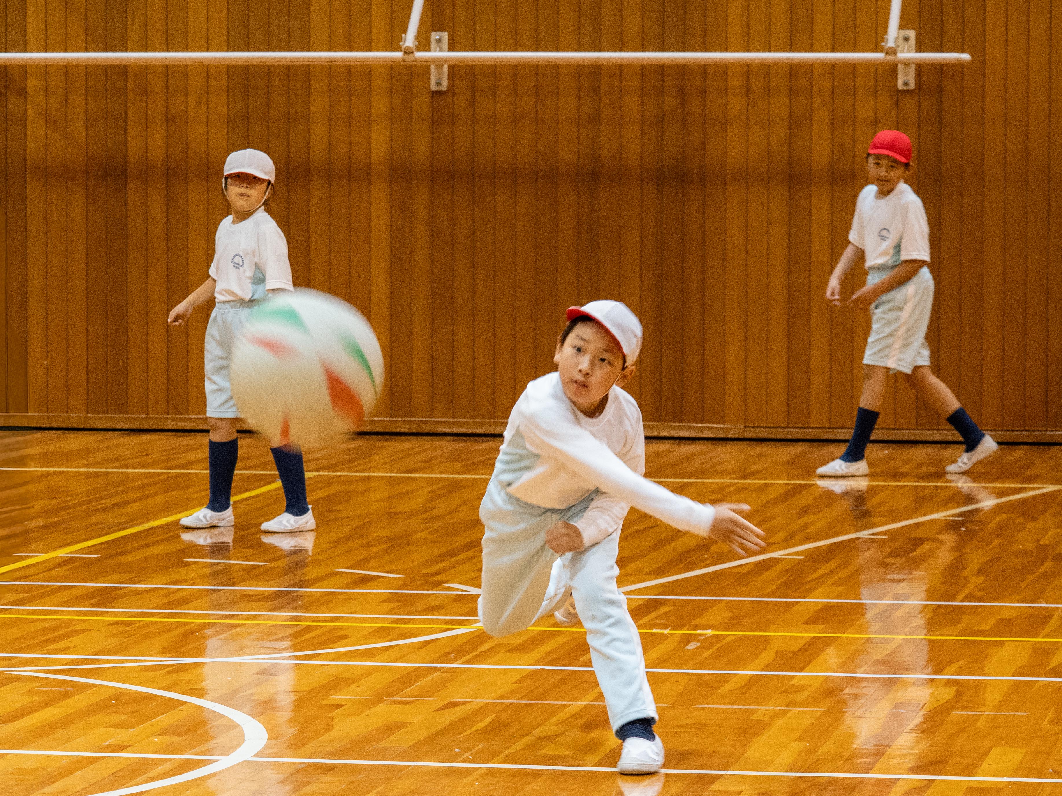 体育では、3年生と4年生が合同で取り組んでいます。